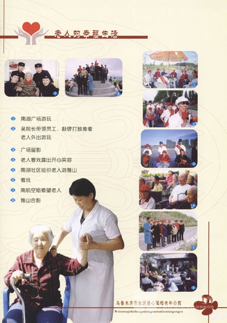 居福星老年公寓位于烏魯木齊市倉房溝55號水泥廠公園內(nèi),經(jīng)民政局批準(zhǔn)籌辦的,擁有幾萬平方米的幽靜庭園,綠樹成蔭、鳥語花香、襯映出人與自然和諧的無盡風(fēng)采,也是烏市首家具有這么寬闊活動場所的老年公寓.并且具有一至品德佳、素質(zhì)高、有經(jīng)驗、有愛心、動管理、樂于奉獻(xiàn)的養(yǎng)老團(tuán)隊. 居福星老年公寓是一座帶電梯的三星級賓館式的六層樓,,從硬件到軟件都體現(xiàn)出高水平、高質(zhì)量、高起點(diǎn),體現(xiàn)出設(shè)施現(xiàn)代化、服務(wù)規(guī)范化、管理科學(xué)化的新型老年服務(wù)機(jī)構(gòu)的特點(diǎn)。,設(shè)有單人間、雙人間、三人間、豪華套房,均帶衛(wèi)生間、洗澡浴霸和電視、電話設(shè)施以及餐廳、保健、醫(yī)療等服務(wù)機(jī)構(gòu).服務(wù)周到,價格低廉,適合中高低收入的老年人就住. 公寓開設(shè)集中養(yǎng)老、居家養(yǎng)老、上門服務(wù)、日托養(yǎng)老、休閑養(yǎng)老、老年旅游、聊天午休等服務(wù)項目.并在公寓開辦老年大學(xué),歌舞培訓(xùn)、老年維權(quán)咨詢站.以親情化、多種化、的服務(wù)機(jī)構(gòu)和人性化的終極服務(wù),老年公寓為入住老人提供生活、餐飲、醫(yī)療、娛樂、學(xué)習(xí)等各種服務(wù),協(xié)助老人進(jìn)行健身康復(fù)、心理調(diào)適、社交聯(lián)誼、近郊旅游等活動,24小時值班服務(wù),為各界老人幸福晚年開拓更為廣闊的前景. 居福星老年公寓倡導(dǎo)健康老齡化、推行服務(wù)親情化,管理規(guī)范化,秉承中華民族尊老敬老的傳統(tǒng)美德,弘揚(yáng)為老助老的時代風(fēng)尚。 為您創(chuàng)造精采的晚年,伴您度過不老的人生,是全體員工的心愿。